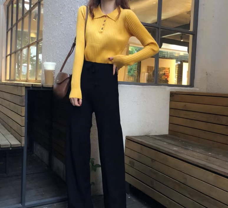 The POLO collar adds a sophisticated flair, making it perfect for social gatherings or casual outings. Available in a variety of colors, including white, apricot, black, and yellow, this versatile piece is tailored for the modern woman who appreciates style and comfort.